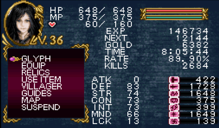 月下はアルカードが強すぎることもあってヌルゲーがちなのだがこのゲームは難しかった。まあ回復アイテム縛らなければここまでにはならなかったと思うが、結構苦戦した。探索はサクサクいき、ボスで詰む感じである。